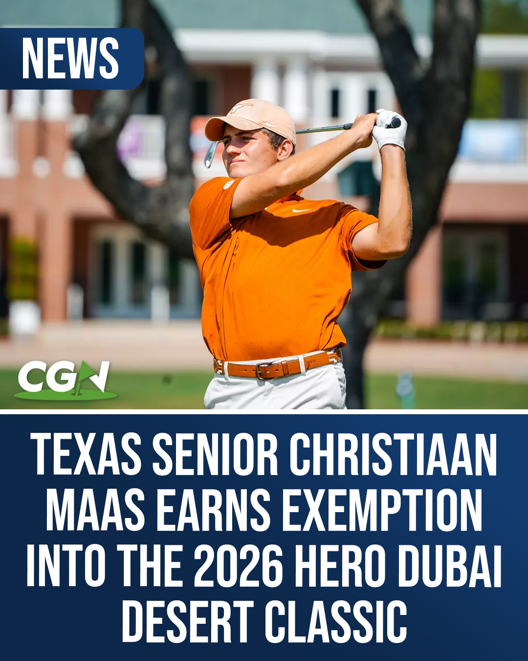Texas senior Christiaan Maas, ranked No. 2 in the PGA TOUR University Class of 2026, has received an exemption into the Hero Dubai Desert Classic. The Rolex Series event will be played from January 22 to 25 at Emirates Golf Club in Dubai.